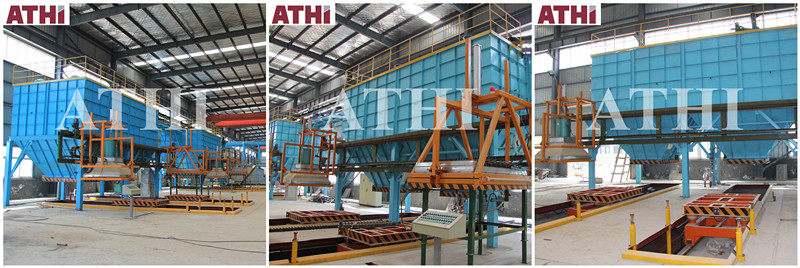 The main equipment of the modeling unit includes: film laminating machine, film spreading platform, drying device, sand feeding system, mobile vibrating table, manipulator, core setting and moulding flat trolley, pneumatic control system, electric control system, hydraulic system, vacuum system,etc.